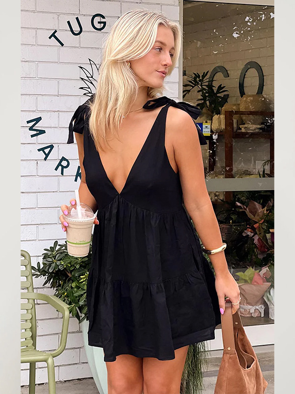 Casual Tie-Back Vest V-Neck Short Dress for Women