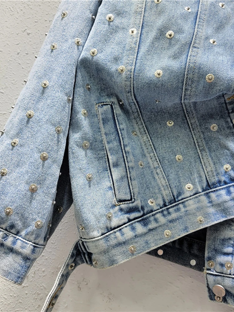 Women’s Denim Jacket Blue Metal Nail Bead Coat