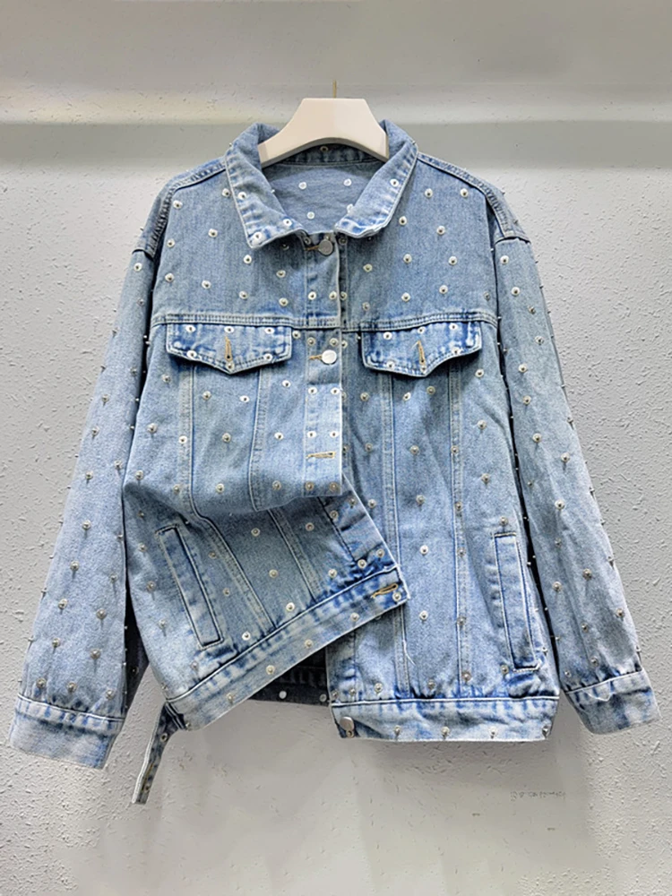 Metal Nail Bead Denim Women’s Heavy Industry Outer Jacket coat.