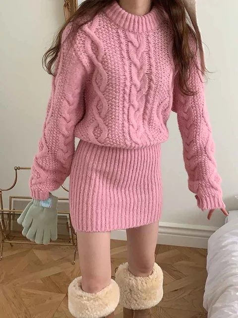 Be the first to review “Chunky Cable-knit Long Sleeve Ribbed Mini Special Occasion Sweater dress Outfit”