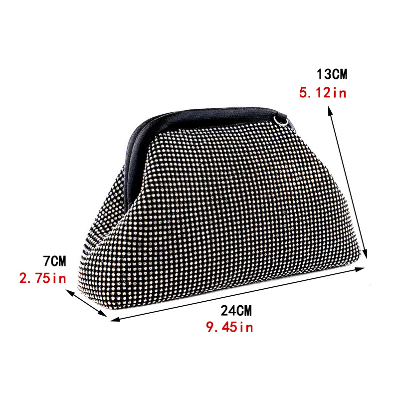 Elevate your evening look with the New Diamond Studded Evening Bag, a masterpiece of elegance designed for the modern woman who loves sophistication and sparkle. Crafted with premium hardware and silk imitation fabric, this luxurious clutch radiates timeless glamour and pairs beautifully with formal gowns, cocktail dresses, or chic party wear. The diamond-studded exterior creates a dazzling effect under any light, making it the perfect accessory for weddings, banquets, galas, and exclusive social events.