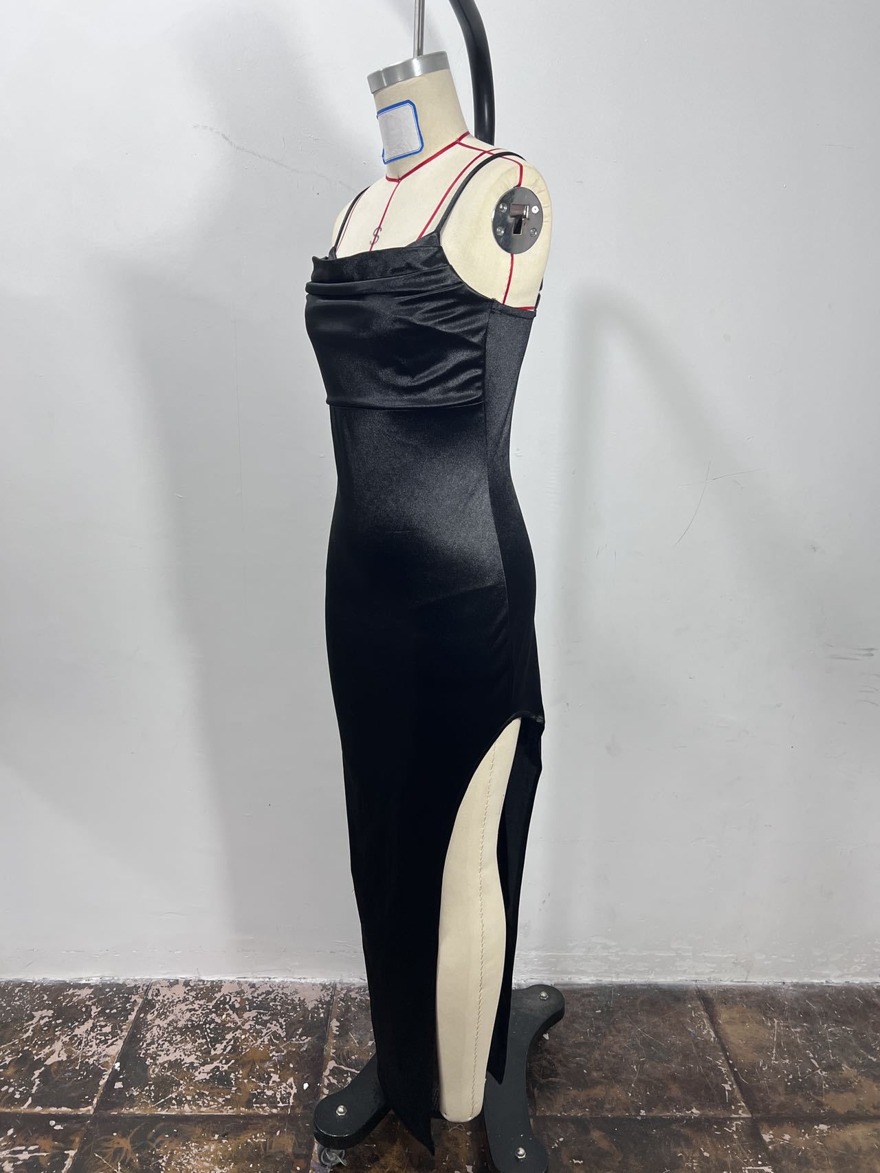Crafted from premium polyester (polyester fiber), the smooth fabric contours the body beautifully, enhancing your natural shape with a flattering fitted silhouette. The elegant pleated detail adds subtle texture, while the dramatic thigh-high slit introduces movement and confidence — perfect for fashion evening events and upscale occasions.