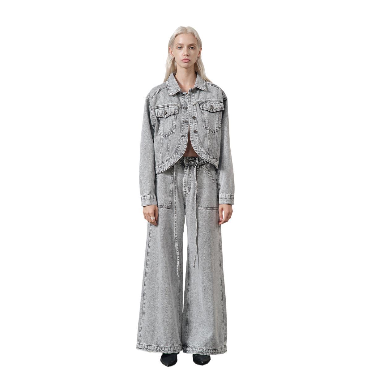 Luxe Street Fashion Grey Designer Style Wide-Leg Long Pants – Women’s Designer Washed Jeans