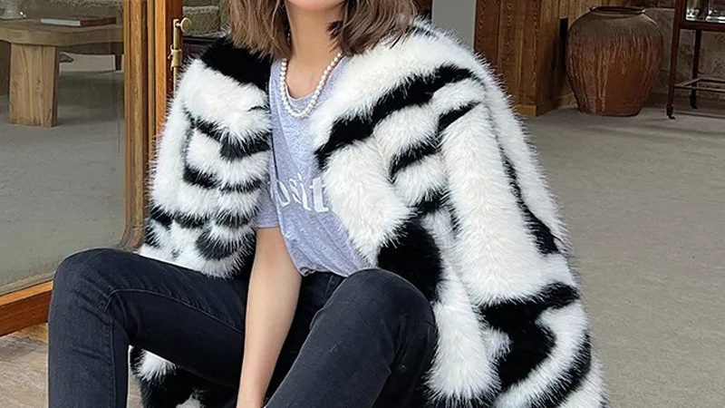 Luxe Zebra Glam Winter Zebra Mink Faux Fox Fur Coat
