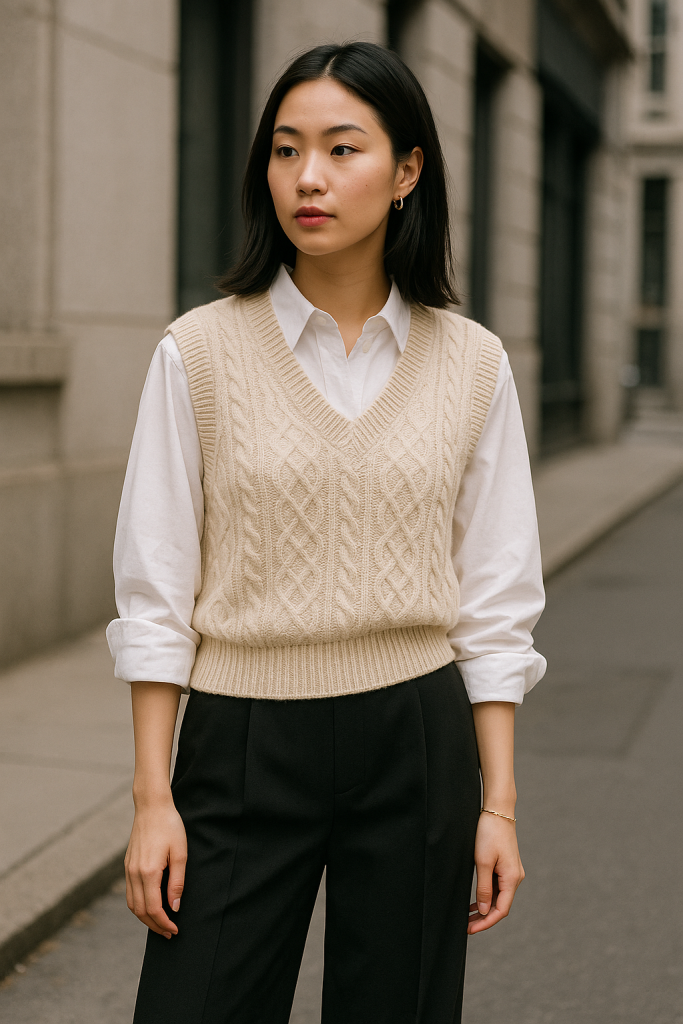 As comfort continues to merge with style, elevated knits are vital. Look for relaxed sweaters in luxe materials (merino, cashmere blends) with refined detailing—subtle patterns, cutouts, or asymmetric shapes. Vogue again nods to “everyday sweater shells” as staples. Vogue